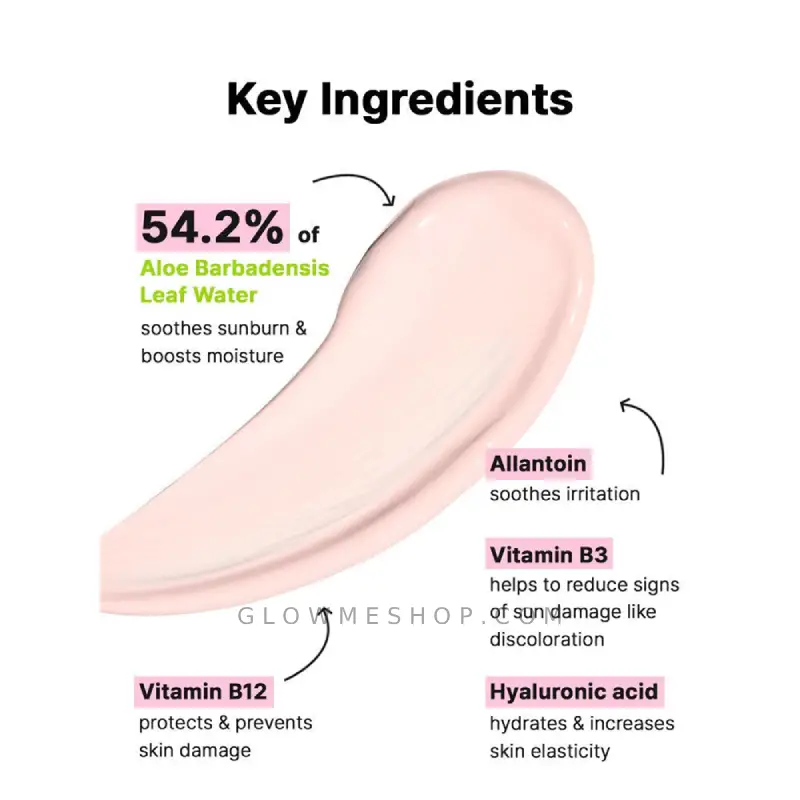 ✔️ حاوی 54.2٪ عصاره آلوئهورا برای آبرسانی و تسکین 💧